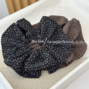 韩版复古小豹纹大肠发圈高级感双层大圆盘发绳丸子头头绳气质头花