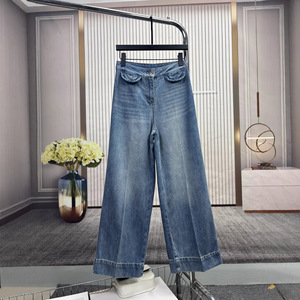 毒家现货25ss V家新款金属装饰女士丹宁牛仔裤软牛仔裤