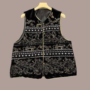 2025年秋季新款真丝丝绒重工绣珠马甲上衣复古轻奢坎肩上衣