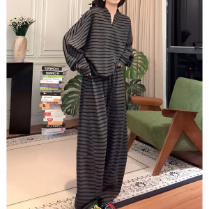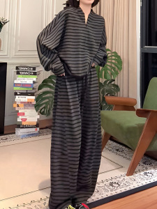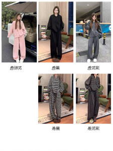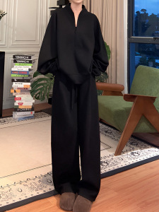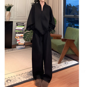 韩系气质高级套装2025春秋新款休闲半拉链卫衣阔腿裤两件套女代发