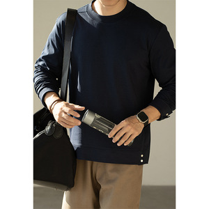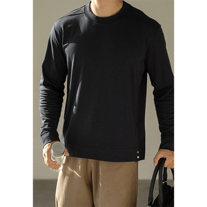 老钱风空气双面棉磁吸扣长袖T恤男2025秋冬落肩打底上衣圆领卫衣