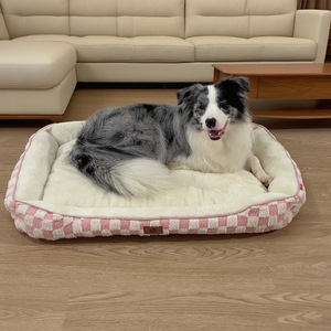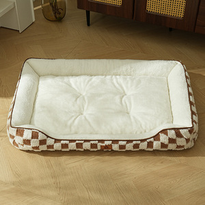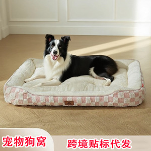 跨境代发加厚保暖格子PP棉方形狗窝秋冬季中小型犬宠物窝宠物用品