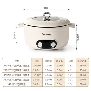 家用大容量鸳鸯锅火锅家用分离可拆洗多功能一体多用不粘电火锅