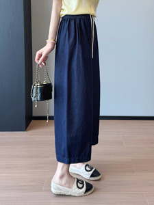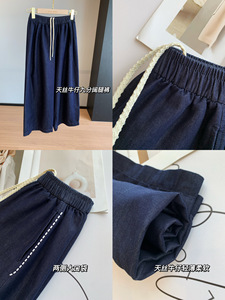 老钱腔调感!巨显瘦天丝牛仔松紧高腰小个子阔腿九分裤气球裤女秋