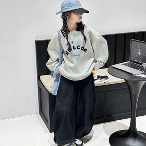 女童卫衣套装春秋款2025年上新中大童印花假两件上衣阔腿裤两件套