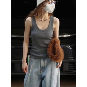 卢浮秋季新款韩系时髦休闲风U领莼色修身背心基础佰搭上衣女