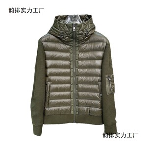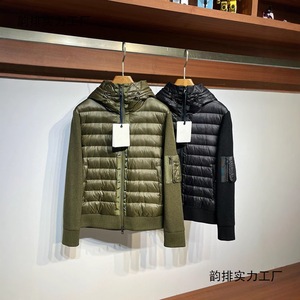 跨境欧货2024新品连帽羽绒服男冬季时尚拼接针织袖开衫外蒙家短款