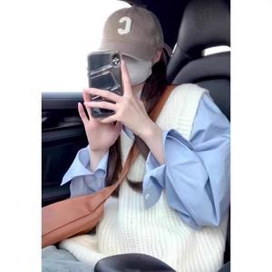 初秋叠穿纯棉蓝色衬衫女打底内搭长袖上衣宽松遮肉显瘦衬衣外穿潮