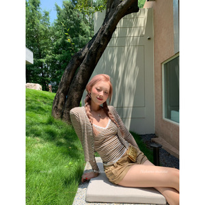 现货天丝条纹吊带背心两件套女2025秋季新款短款开衫上衣套装