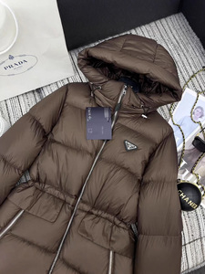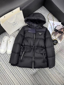 25新款P连帽羽绒服外套腰间抽绳设计经典的倒三角标皮牌点缀 轻盈