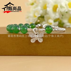 碎银几两蝴蝶玛瑙手串时尚百搭轻奢低调纯银手饰品蝴蝶手链绿玛瑙