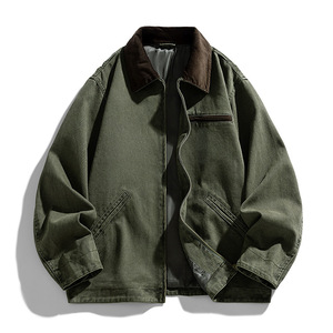 翻领夹克男士上衣2025年春秋季新款纯棉复古工装休闲外套