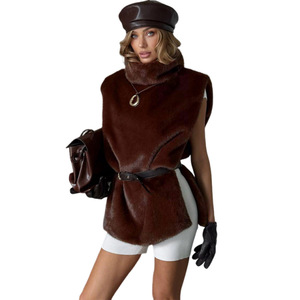 外贸2025秋季新款女装欧美风时尚纯色高领毛毛坎肩无袖马甲上衣女