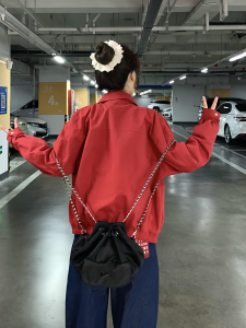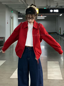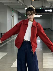 红色哈灵顿外套女春秋2025新款美式复古基础通勤男女款百搭夹克潮