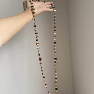 复古波西米亚风彩色贝壳串珠项链女小众民族风长款个性双层毛衣链
