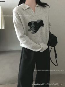 韩系灰色polo领羊绒针织衫上衣修身短款内搭打底衫翻领毛衣女秋冬