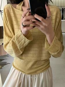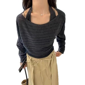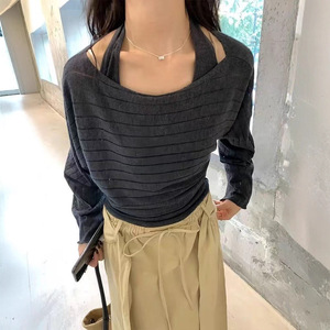 韩系慵懒风气质长袖针织衫女2025秋冬新款罩衫露背针织背心两件套