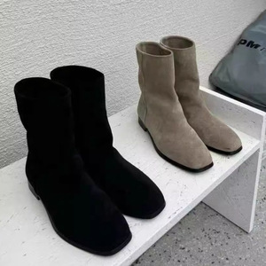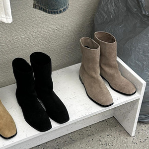 出货版~2025新款韩版高级感绒面短筒西部靴女平底超软秋冬单靴子