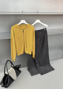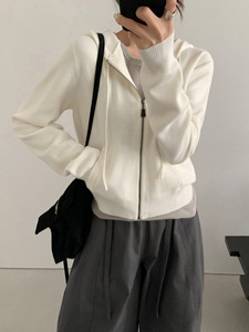TG 休闲风针织帽衫女2025秋季新款显瘦纯色百搭拉链开衫外套25806