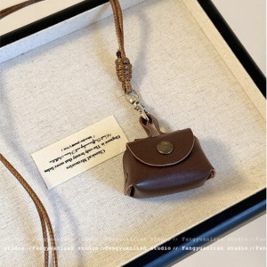 包藏心动 复古豹纹皮质零钱包项链女长款毛衣链收纳包包挂脖配饰
