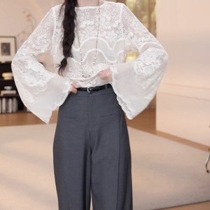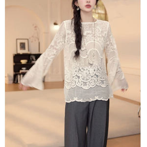 法式气质蕾丝上衣时尚洋气百搭罩衫法式别致独特漂亮小衫秋季女装