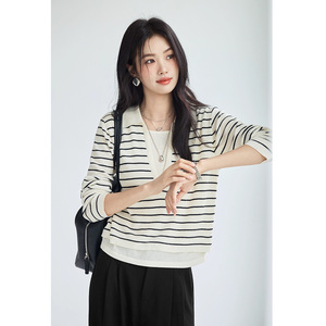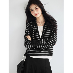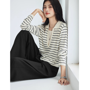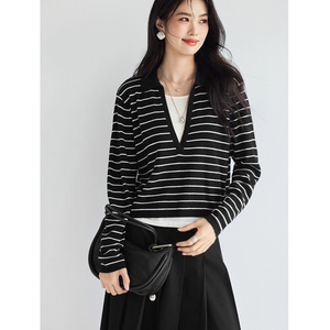 撞色假两件POLO长袖套头针织衫2025秋季新款1G8932151