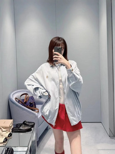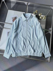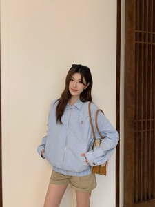深圳南油miu风新品条纹夹克外套翻领复古宽松拉链男女款字母刺绣