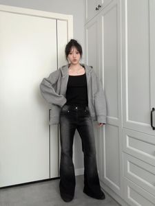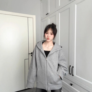 2025新款纯色连帽卫衣外套灰色开衫女春秋休闲宽松韩系慵懒风上衣