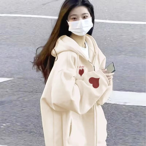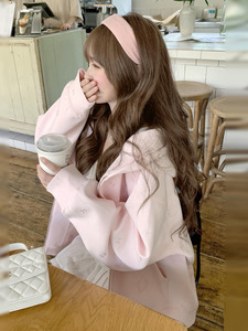 山东即墨卫衣连帽外套女2025新款早秋宽松慵懒风韩系甜美显瘦开衫