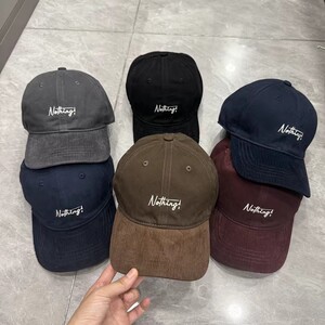 秋冬百搭拼接条绒显瘦减龄棒球帽子女休闲个性情侣字母刺绣鸭舌帽