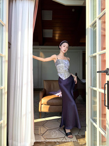 鹭青一原创【集邮册】复古印花吊带背心女春雪纺打揽设计内搭上衣