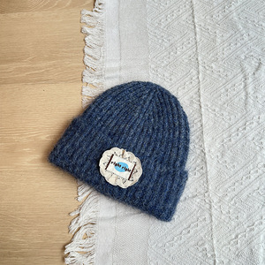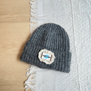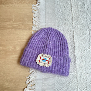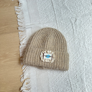 韩系简约甜美蕾丝花边布标针织帽秋冬百搭加厚毛线帽防风保暖帽子