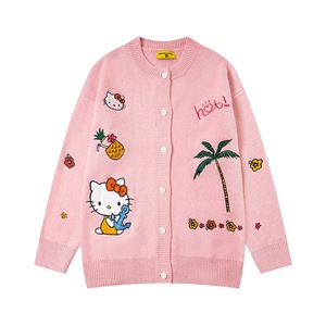 美式复古趣味卡通刺绣圆领套头开衫毛衣男女秋冬宽松休闲针织外套