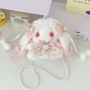 日系洛丽塔蝴蝶结兔子包包珍珠手提收纳包少女风甜美系列双肩背包