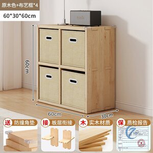 全实木【加深4格+4个布艺筐】60x30x60cm