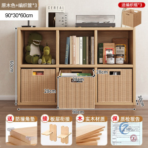 全实木【三层加深9格+6个布艺筐+3个藤编筐】90x30x90cm