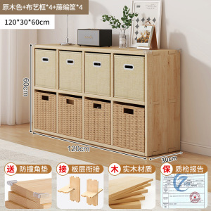 全实木【加深8格+4个布艺筐+4个藤编筐】120x30x60cm