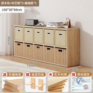 全实木【加深10格+5个布艺筐+5个藤编筐】150x30x60cm