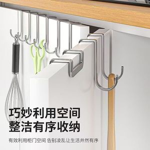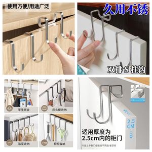 宿舍U形挂钩上铺柜门双免打孔多功能厨房背S钩不锈钢收纳双挂钩