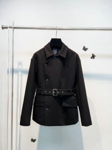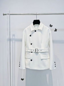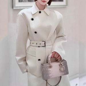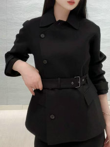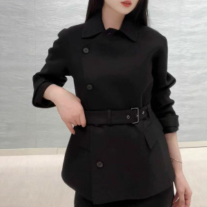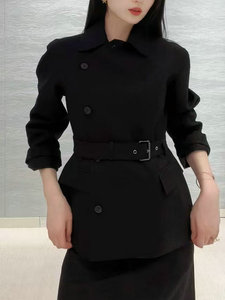 秋冬新品明星同款女装轻职风气质干练系带收腰斜扣翻领长袖外套女