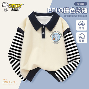 史努比童装儿童长袖T恤春秋装男童校园插肩POLO衫秋季翻领打底衫