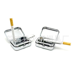 跨境新品方形迷你便携式翻盖烟灰缸随身口袋烟灰盒时尚户外收纳盒