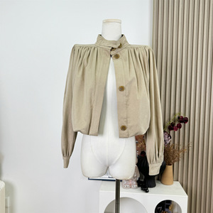 气质灯笼袖云朵下摆早秋新款立领皮衣显瘦短款夹克外套