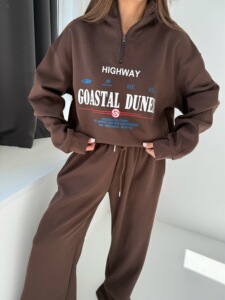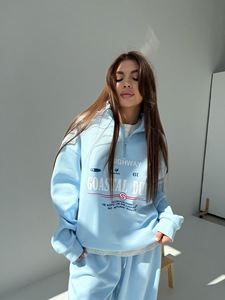 欧洲站亚马逊速卖通秋冬新款个性街头字母印花半拉链立领卫衣套装