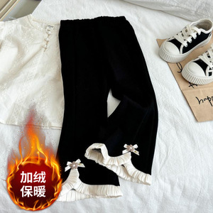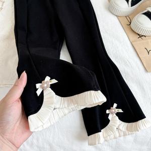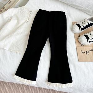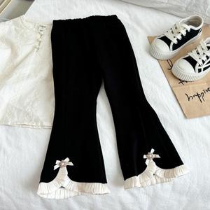 女童裤子春秋新款时尚公主喇叭裤秋季黑色小香风小童洋气女宝长裤