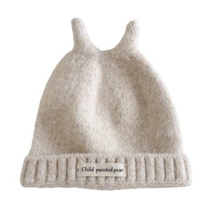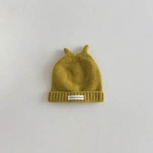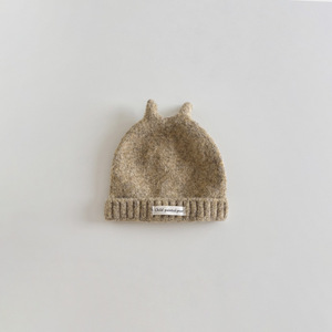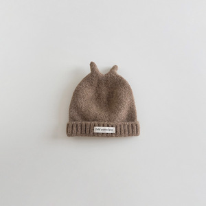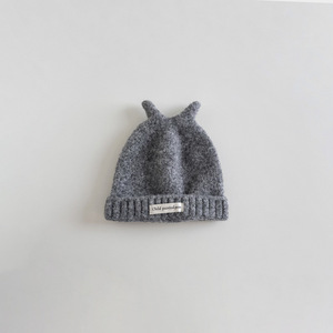 一潘 儿童帽子秋冬新款时尚字母标牛角帽可爱宝宝护耳针织毛线帽