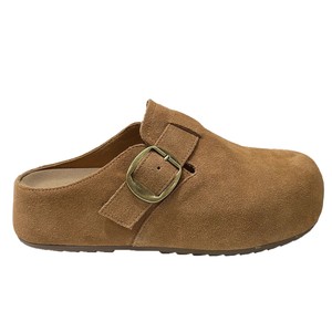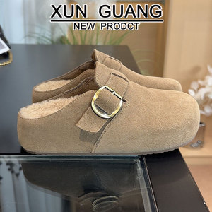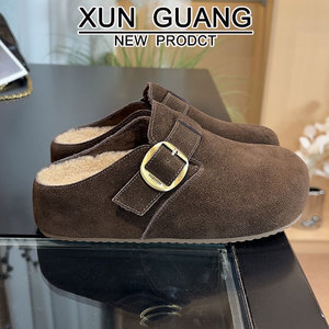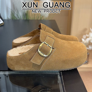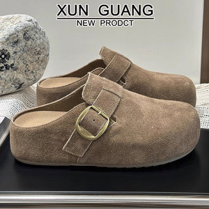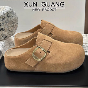 真皮勃肯鞋女包头半拖鞋2025秋冬新款外穿百搭厚底懒人一脚蹬拖鞋