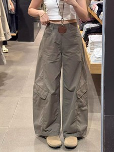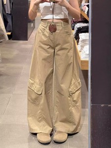 卡其色裤子大码胖mm女美式复古工装弯刀裤2025新款宽松休闲阔腿裤