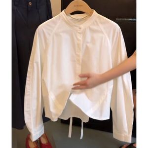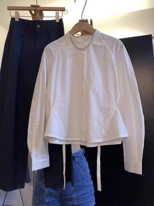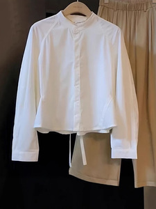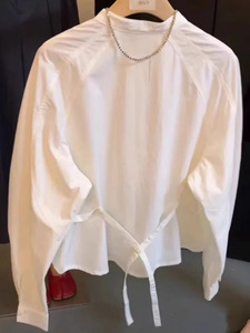 法式春秋新款宽松时尚小个子长袖衬衣收腰绑带隐藏单排扣衬衫上衣