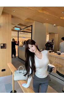 依帆泰新款韩系针织长袖安迪绒v领毛衣打底衫女内搭气质显瘦上衣